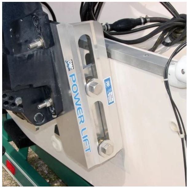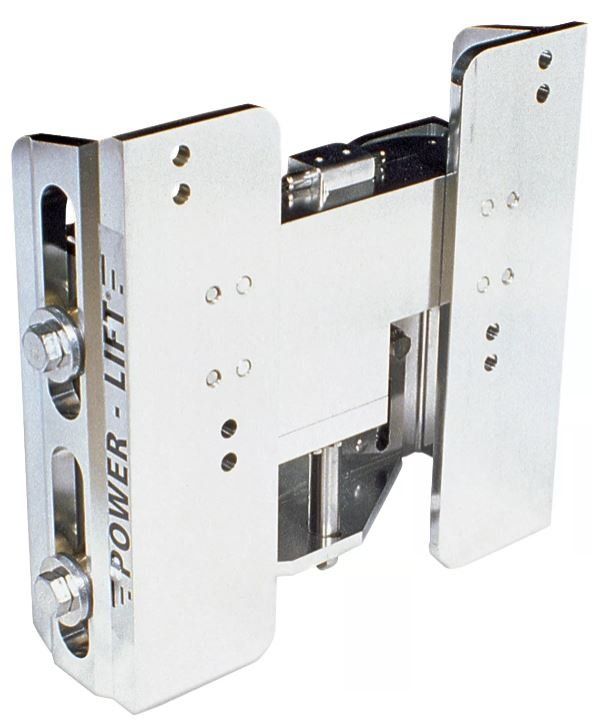The hydraulic actuator is mounted inside the structure of the Power-Lift, yet it is fully accessible without removing the engine. There are no hoses to contain, nor will you have to contend with mounting a pump and reservoir inside your boat, as is the need with other transom jacks. The hydraulic actuator is completely self-contained with its own fluid reservoir (eliminates the need for hydraulic tank and hoses inside the boat). It contains a permanent magnet motor for more power and constant torque. The cylinder within the actuator has twice the lifting capacity than other transom jacks on the market. It contains a no-leak seal and wiper that keeps dirt and water out of the working parts. The system is made of 100% non-ferrous material which makes it impervious to saltwater and freshwater.